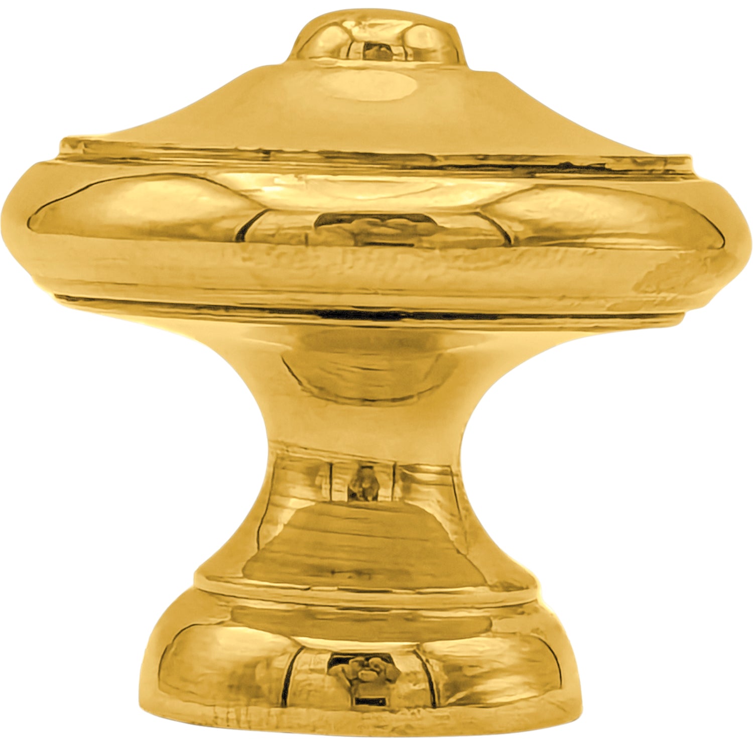 This simple Colonial style knob will add a classic touch to your cabinets and drawers. Measures 1 1/4 inch in diameter with a projection of 1 inch. This product is available in several other finishes and comes complete with mounting hardware. Available in several different finishes including polished brass, antique brass and black bronze.