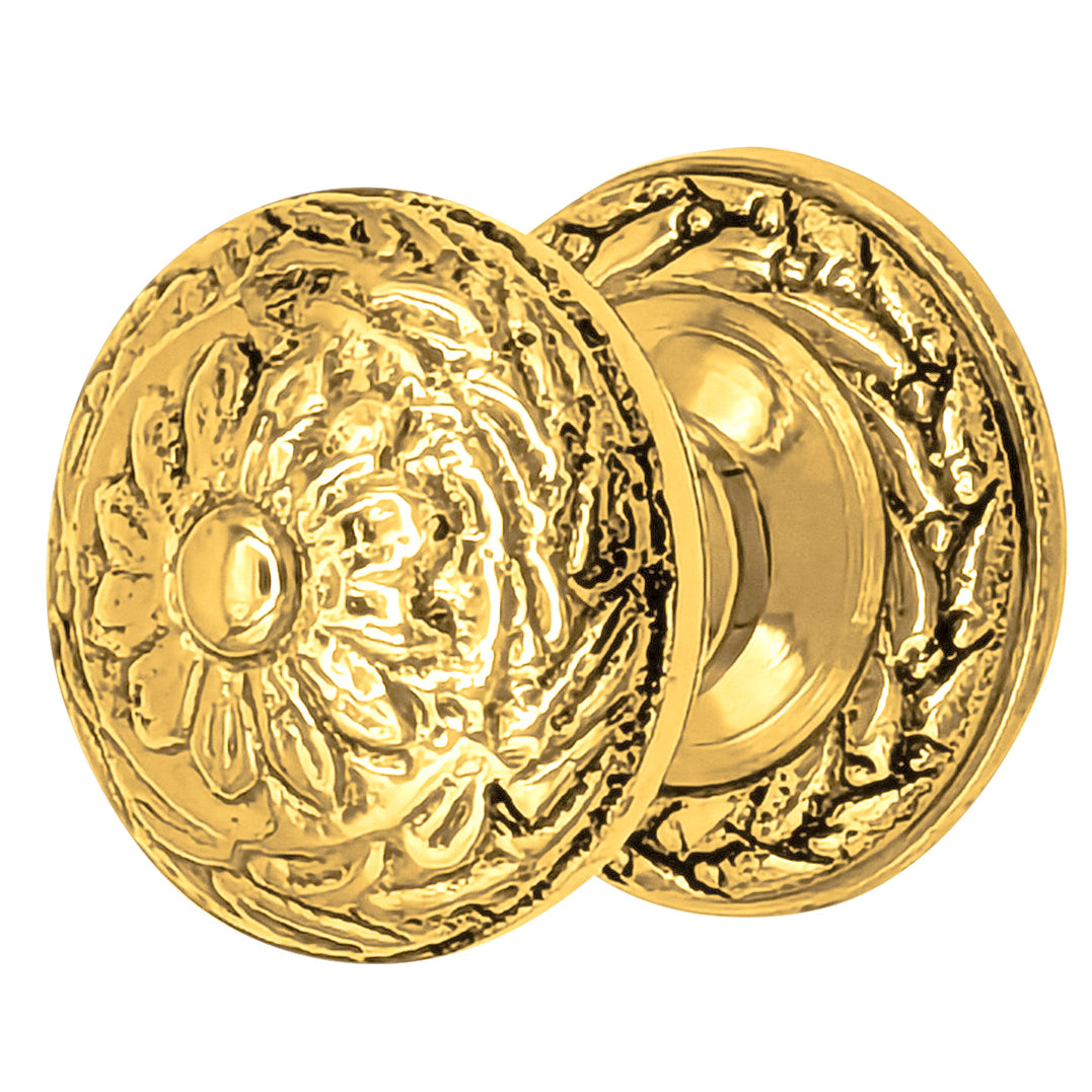 1 1/4 Inch Ornate Floral Round Solid Brass Cabinet & Furniture Knob