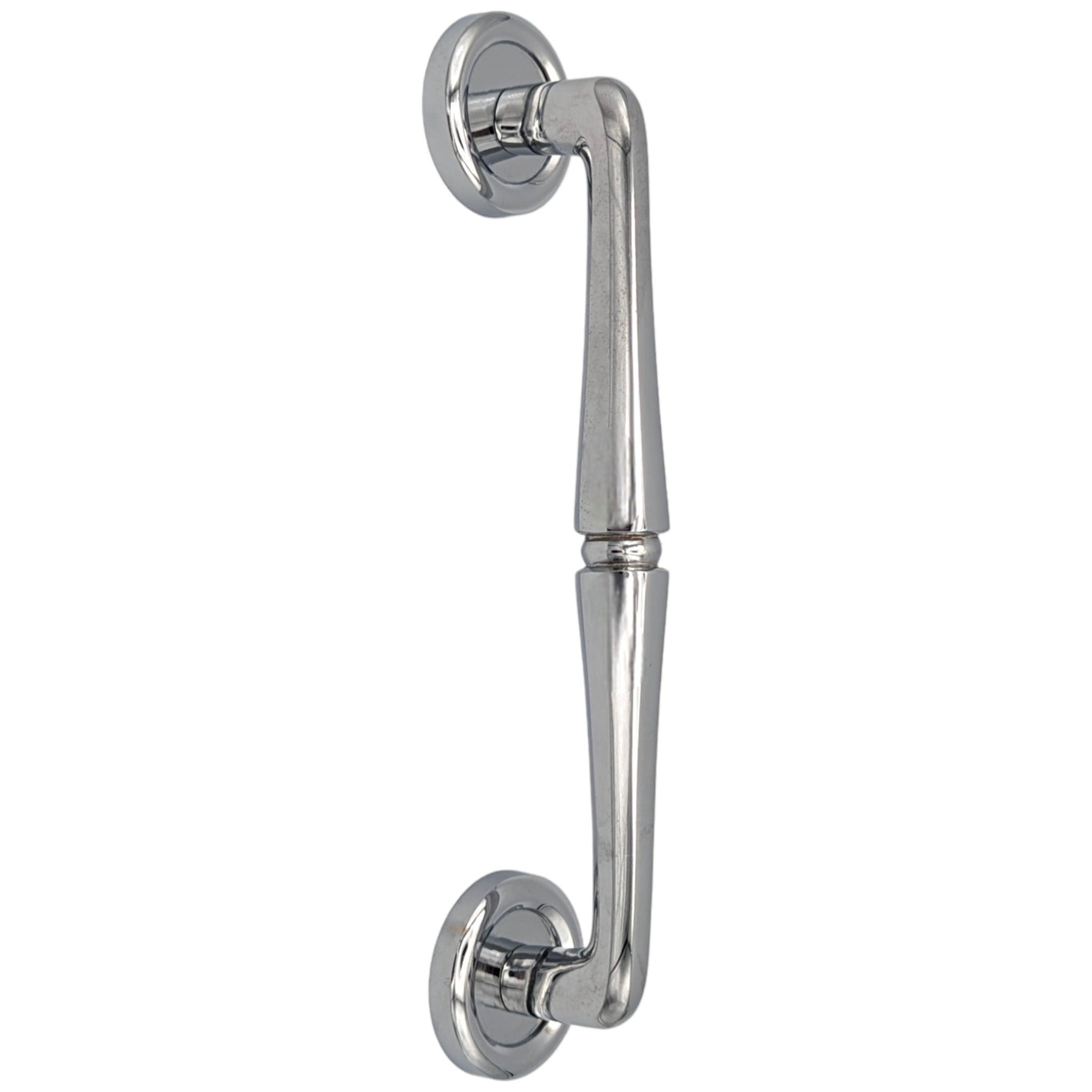 This oversize Madison pull has an overall measurement of 10 inches with a center to center measurement of 8 inches. Crafted from solid brass and hand finished, each pull in our collection is solid brass, ensuring a tangible sense of quality and meticulous craftsmanship. Each pull comes with bolts for installation.