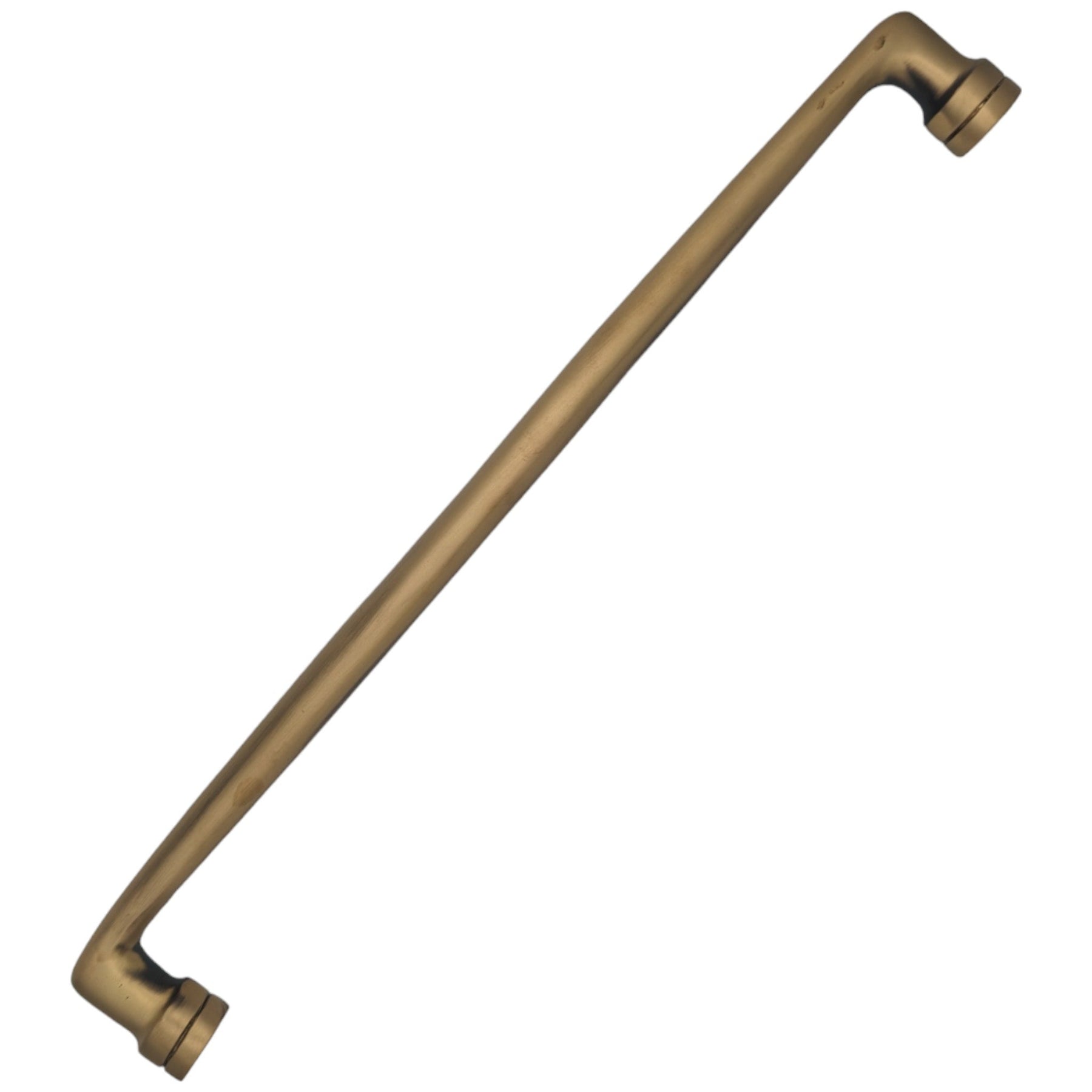 This oversize Quincy pull has an overall measurement of 19 inches with a center to center measurement of 17.5 inches. Crafted from solid brass and hand finished, each pull in our collection weighs approximately 4.1 lbs, ensuring a tangible sense of quality and meticulous craftsmanship. Each pull comes with 2 2.5 inch bolts with removable acorn caps.