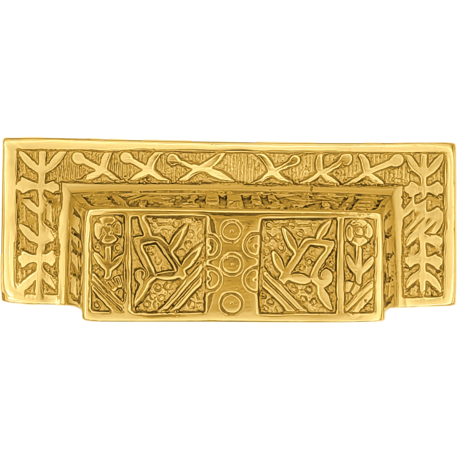 Measures 3 1/2 inches long and 1 1/4 inches tall. Center to center mounting distance is 3 inches (76.2 mm 3.00 c-c). Highly ornate and hand finished detailing.