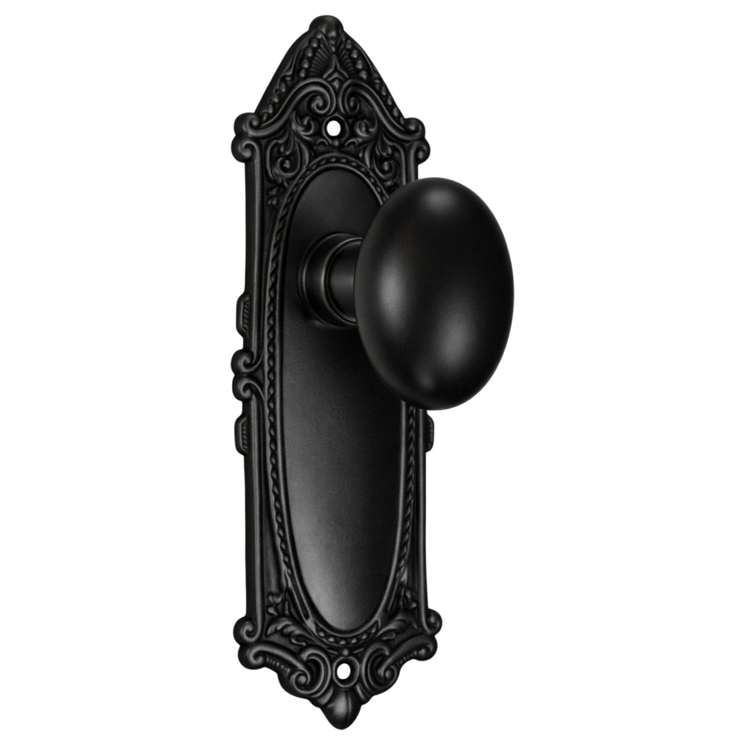 Ornate Victorian Long Backplate Door Set with Egg Door Knobs (Several Finishes Available)