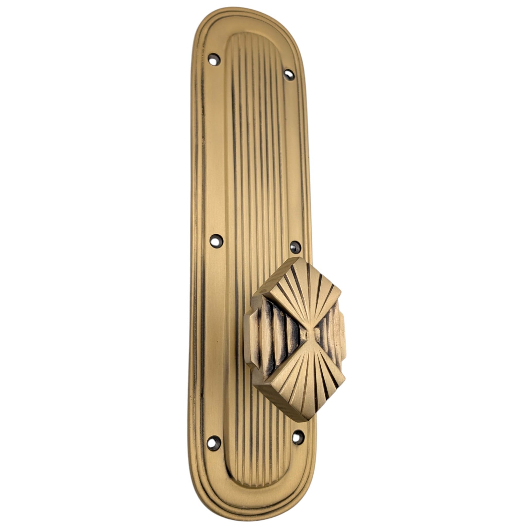 ##Antique Hardware## Art Deco Lined Backplate Door Set with Art Deco Fanfare Door Knobs (Several Finishes Available)