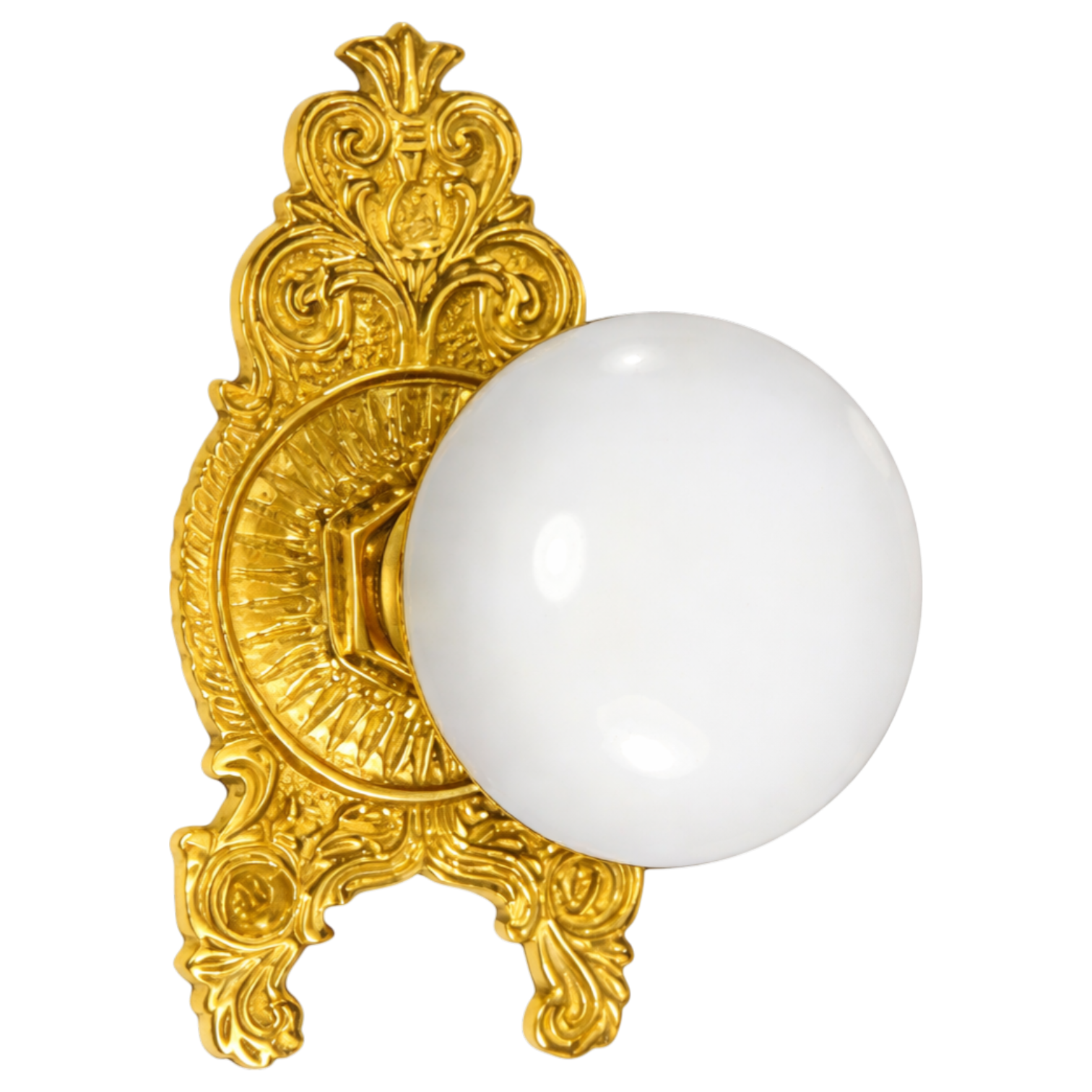 This door set pairs classic white porcelain door knobs with an ornate Victorian-style solid brass rosette, reflecting the decorative richness of late 19th-century design. The smooth porcelain knobs offer a clean, understated contrast to the sculpted rosette, creating a balanced and elegant appearance. A timeless choice for traditional interiors, restorations, and period-inspired homes.