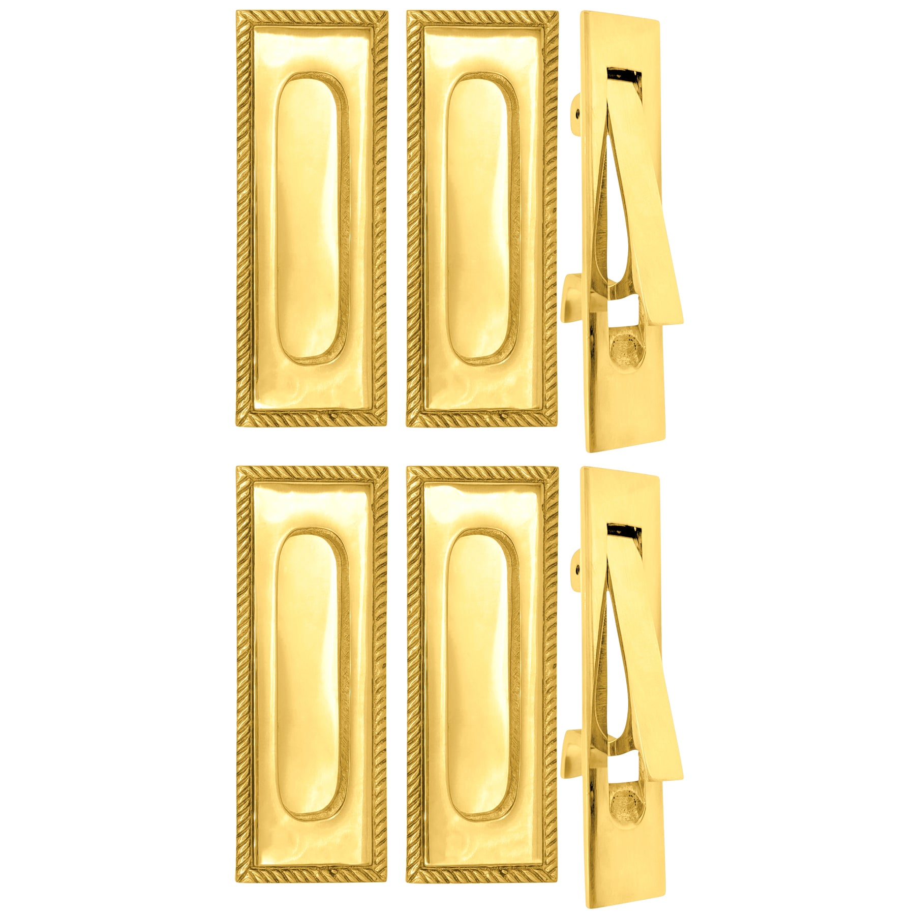The flush pull measures approximately 4 9/10 inches tall by 1 3/4 inch wide and the edge pull measures approximately 5 inches tall by 1 inch wide. The set is crafted from solid brass, this detailed hardware piece comes complete with complementary screws, ensuring easy installation with all the necessary mounting hardware included. For a flush finish, routing may be necessary.