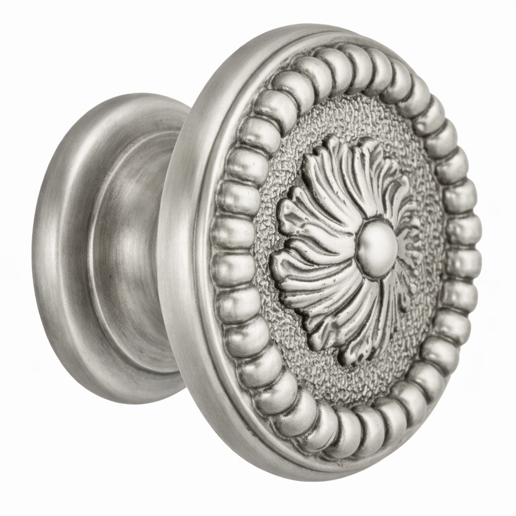 1 3/5 Inch Beaded Floral Cabinet Knob (Several Finishes Available)